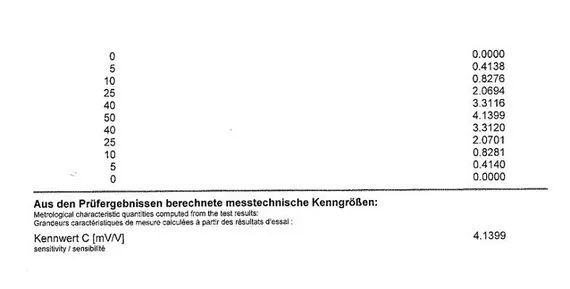生产过程中的校准测量结果记录在文件中,并随力传感器一起提供,其规定了所谓的额定输出(符号C),单位为mV/V。