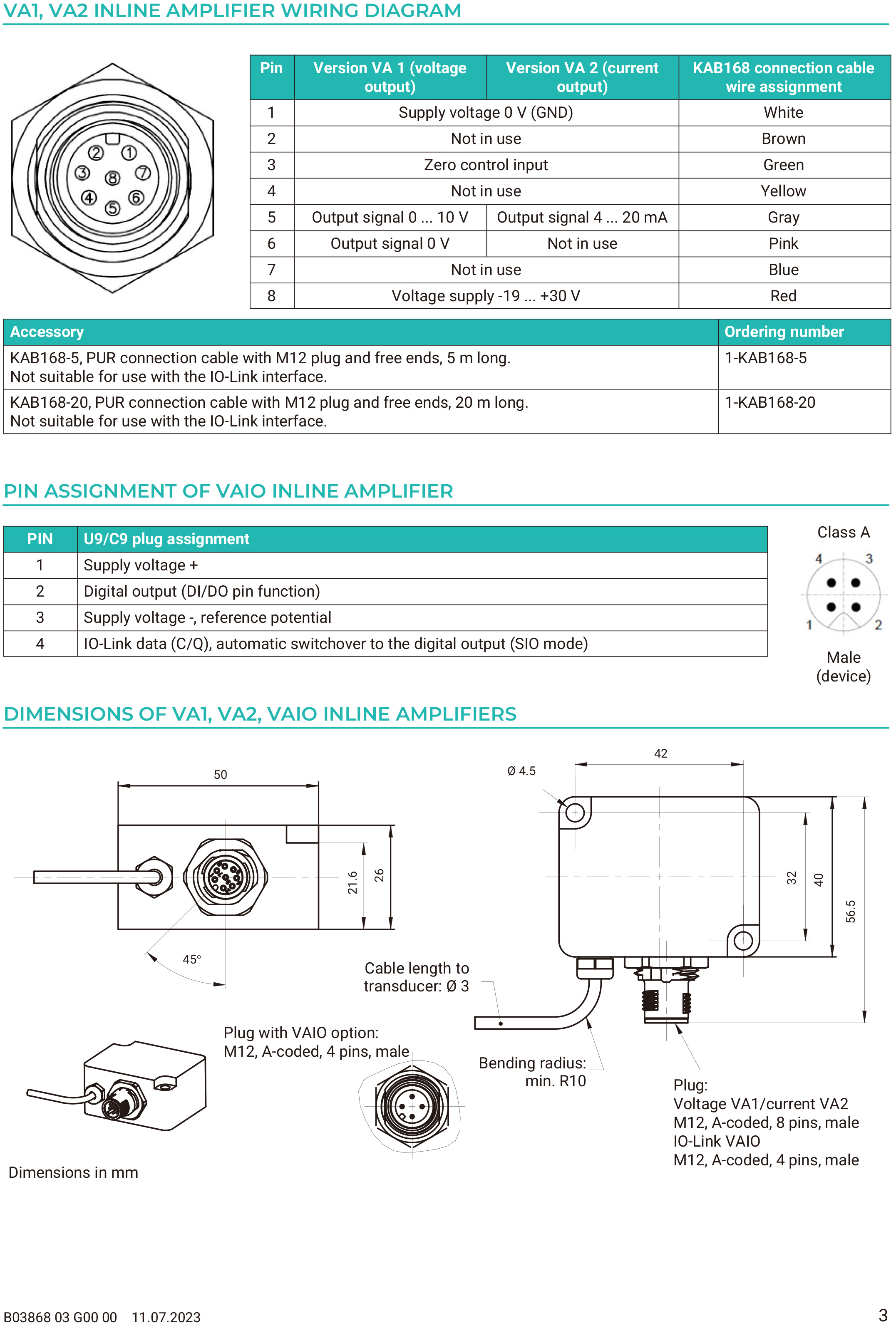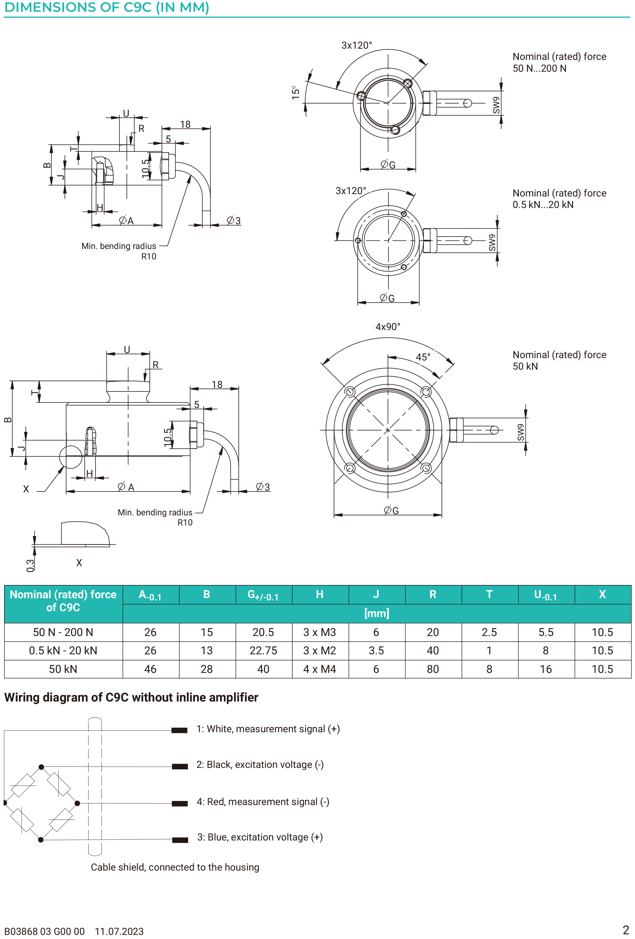 C9C 测力传感器有两种有源型号:配备电压输出(0-10 V)的 VA1 及配备电流输出(4—20 mA)的 VA2。