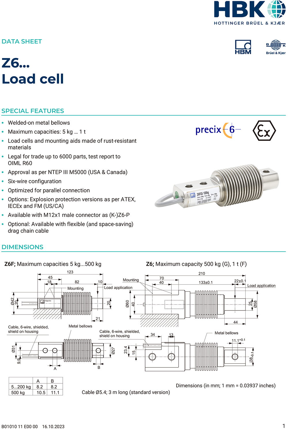 HBM Z6 称重传感器:额定量程从 5 kg 到 1 t,以精确和和坚固性著称