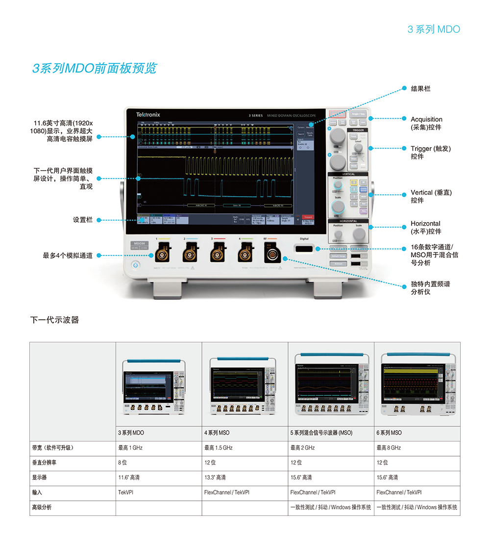 模拟通道上为 5 GS/s(1 GHz 型号)、2.5 GS(所有其他型号)