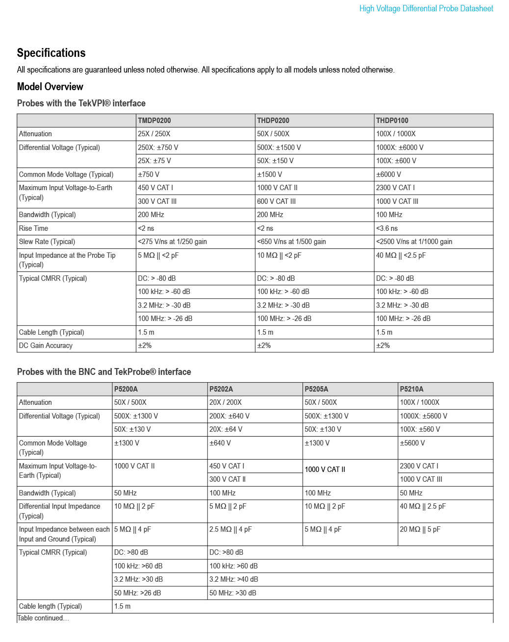TMDP0200 和 P5202A 专为差分要求高达 ±750 V 的中压应用而设计。这些探头具有较低的衰减范围并提供更好的信噪比。