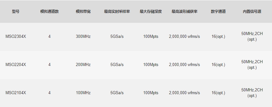 MSO2000X系列混合信号示波器,采样率最高5GSa/s,每通道存储深度可达100Mpts。采用独有的 Ultra Phospho® 3.0技术,波形捕获率高达2,000,000 wfms/s,具有 256 级辉度等级色温显示,先进的数字触发系统,触发灵敏度高,触发精度达到10ps;支持多种高级触发、串行总线触发和解码;支持频谱分析、电源分析、直方图、波形录制、增强分辨率、通过测试、搜索和导航等高级功能和分析模式;具备丰富的测量和数学运算功能。采用了 10.1 英寸电容式触摸屏,支持多种手势实现对波形的常用操作,以及WebServer实现远程操控一款功能全、性能强大的仪器设备。