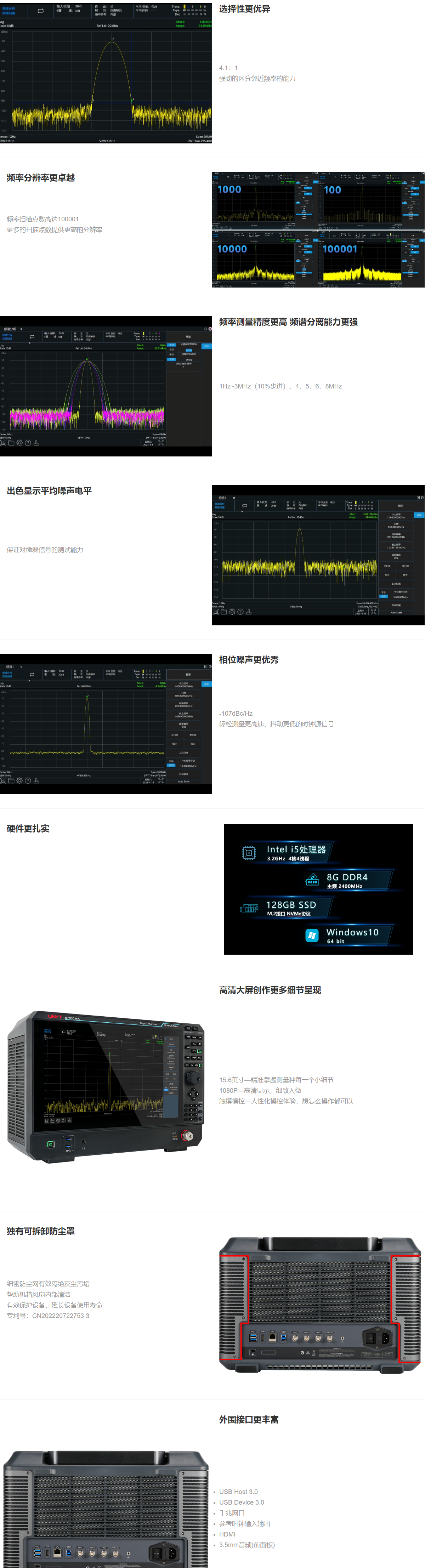 UTS5000A系列信号分析仪测量范围为9kHz~13.6GHz/26.5GHz;选择性为4.1 :1;拥有强大的频谱分析和矢量分析能力;支持高级测量、EMI和Windows+,能让用户掌握被测信号全方位的动态及细节,呈现完美的测试效果和提供更佳的解决方案。可应用于电子制造业的功能/终端/质检测试,也适用于无线通信测量,射频微波课程,电磁兼容预扫,半导体测量等众多应用场景中。