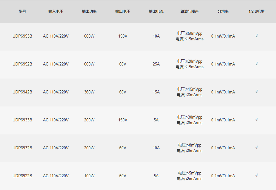 UDP6900系列宽范围可编程开关直流电源,在固定的功率下实现多种电压和电流的组合输出,全系列内置标准RS-232、RS-485、USB和模拟量接口,支持SCPI协议,方便远程控制、工业PLC控制和组建智能化测试平台,广泛应用于电源模块、电池充电及传感器等多种测试领域。