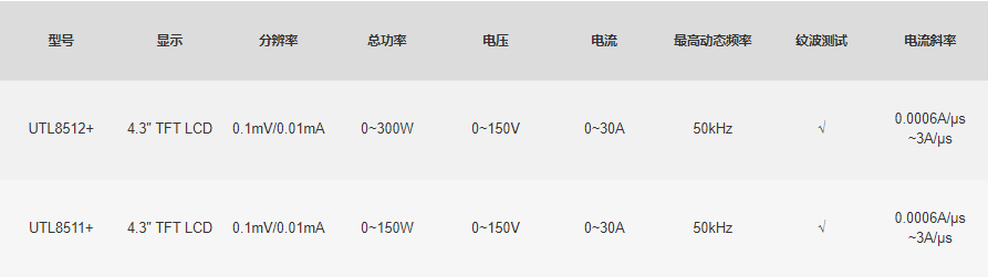 UTL8500+系列直流电子负载是新一代智能4.3英寸TFT液晶大屏高性价电子负载。高达500kHz的高速同步采样,高性能的DSP处理。0.1mV/0.01mA高分辨率,内置电压电流纹波显示,方便瞬态测试及多方位的智能模拟及分析。快捷、高效、直观的LIST可编程自动测试模式,满足大部分的研发及测试需要。