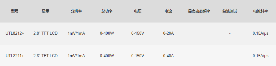 UTL8200+系列电子负载配有2.8英寸液晶显示屏,操作方便简洁,外观时尚大方,运行稳定,支持双通道完全独立测试,拥有较宽的功率测量范围,测试分辨率最高可达1mV/1mA,具备丰富的测试功能与模式,同时标配 RS-232C 通信接口,灵活满足各种现场测试条件,实现与自动化生产线、自动测试系统(ATS)无缝连接。