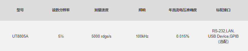 UT8805A台式数字万用表,五位半双显示,拥有出众的读数速率和精确度,是为满足客户多功能,高精度,自动测量要求而设计的一款产品.