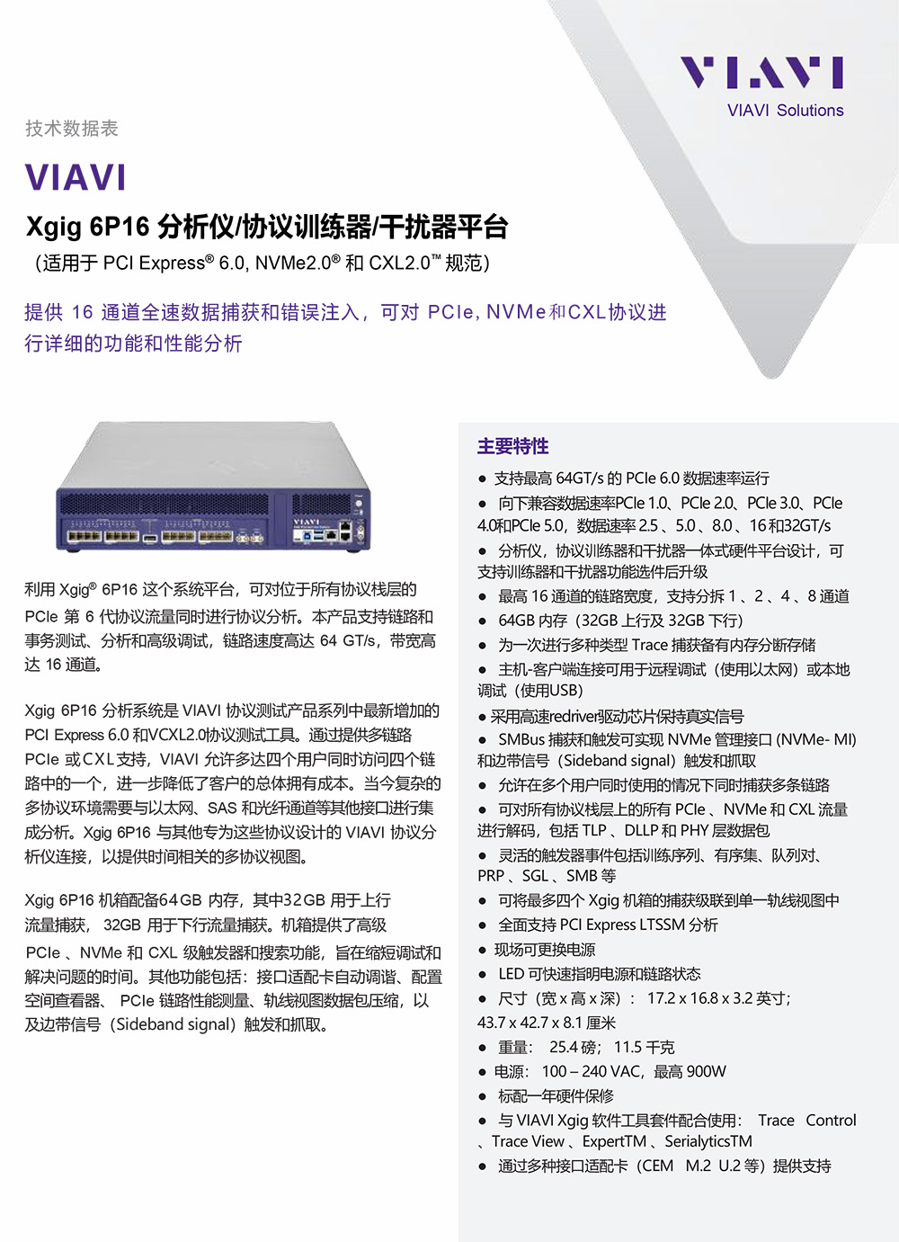 VIAVI Xgig6P-PCIe6-X16-PF 协议分析仪