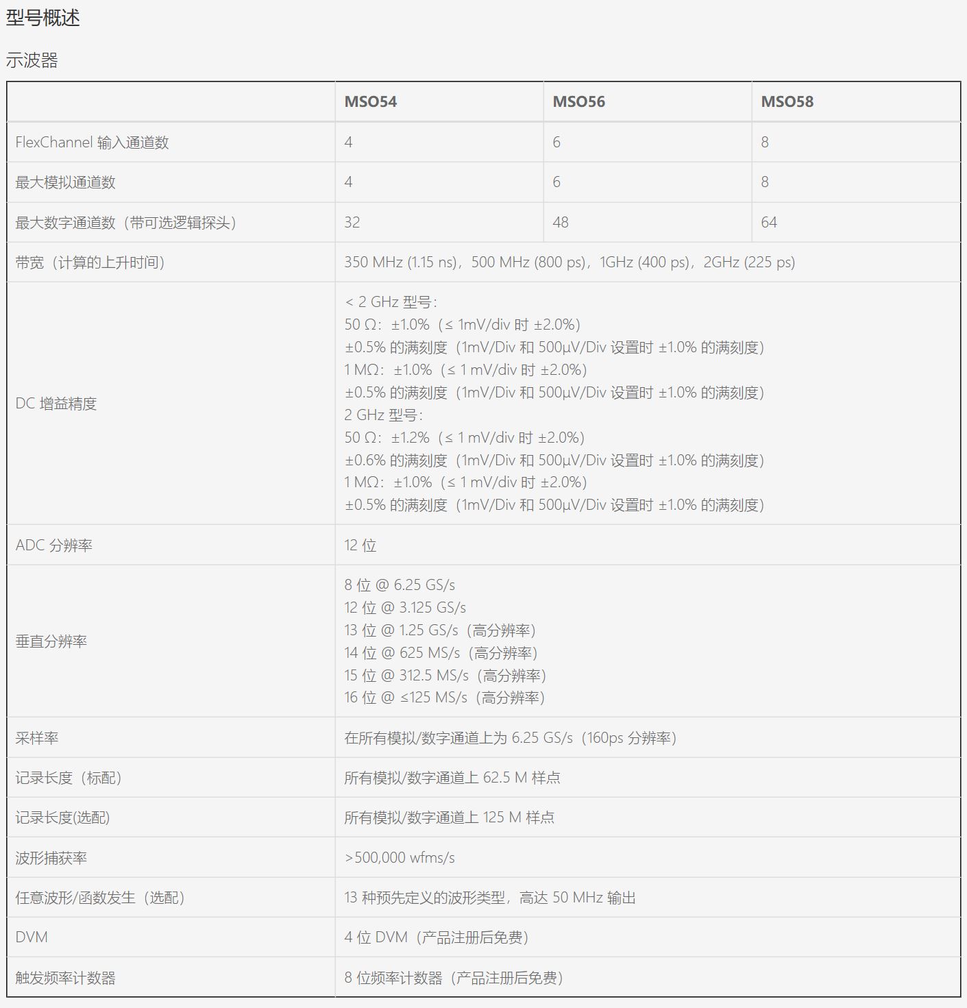 采样率(所有模拟/数字通道)