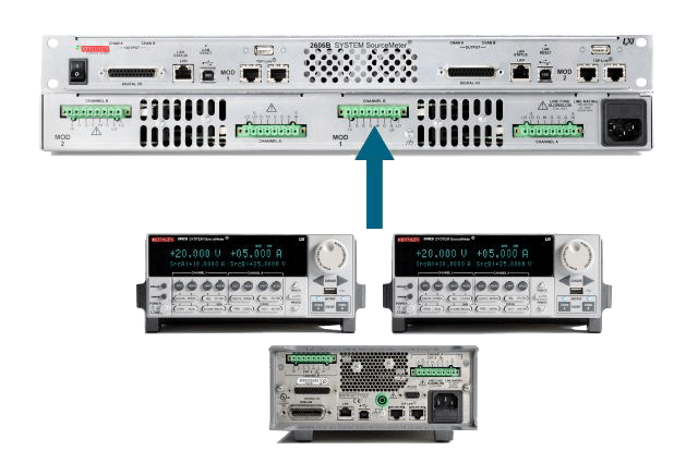当生产测试机架空间增加且您需要尽量减少增加新测试机架的需求时,与传统 2U 外形的 SMU 相比,2606B 可以在同一机架区域中增加更多通道容量。