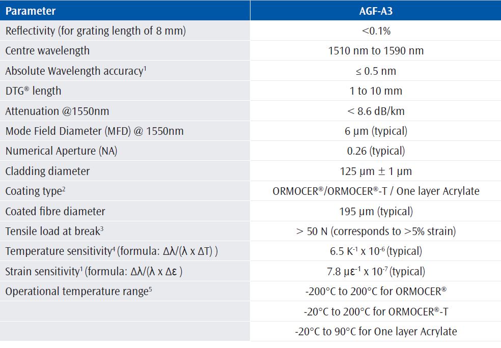 全光栅光纤(AGF®)是包含了紧密排列的低反射率(R<0.1%)拉丝塔光栅(DTG®)的光纤。光栅之间的距离可缩小至10mm。可选择光纤布拉格光栅(FBG)的长度,使整段光纤的光栅覆盖率超过95%。该光纤被设计应用于光频域反射计(OFDR)系统。该系统可在一个大的应力或温度链光纤上快速而精确地定位至几毫米的位置。