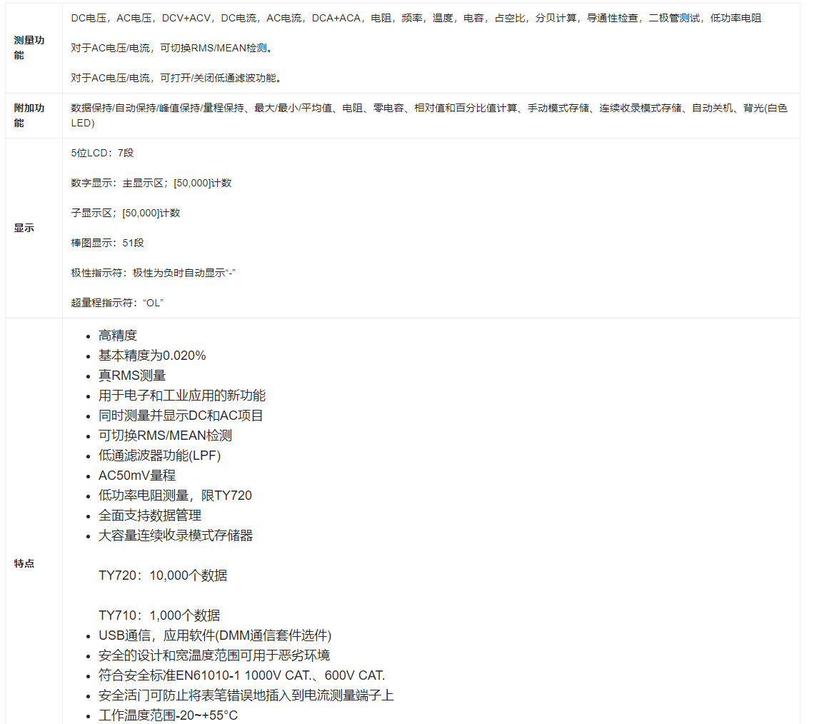 特点: 类别IV 600V,类别III 1000V,大容量内存(10,000个数据),USB通信功能,闭壳校准(用户校准功能)。