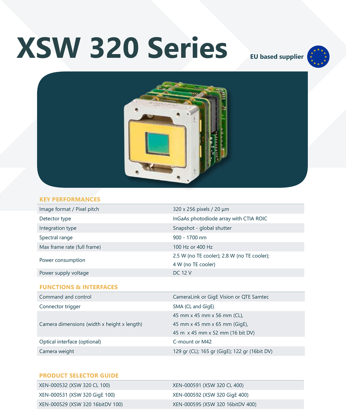 The XSW 320基于自主研发的温度稳定的InGaAs芯片,分辨率为320x256。