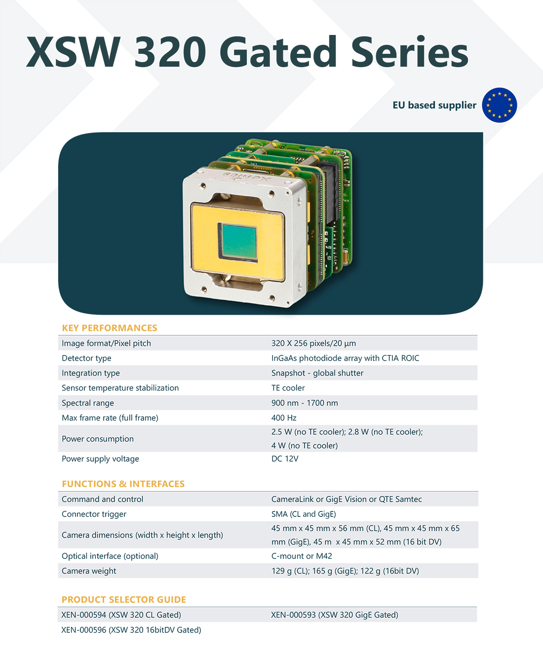 XSW 320 Gated 系列基于自主研发的InGaAs芯片,分辨率320x256。