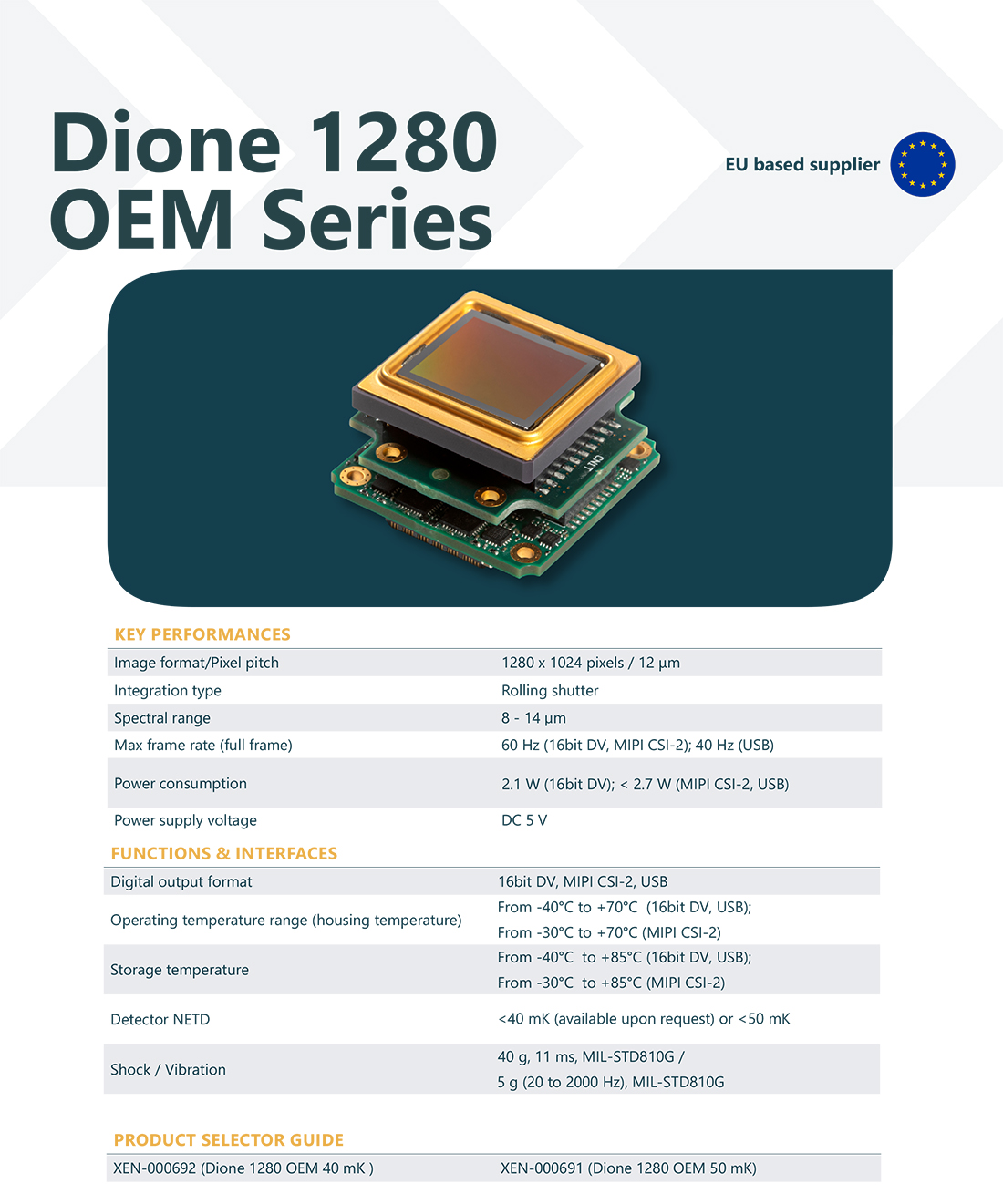 Dione 1280 OEM 系列基于具有 1280 × 1024 像素的非制冷 12μm 间距微测辐射热计探测器。 NETD 小于40mK(可根据要求提供)或 50mK。