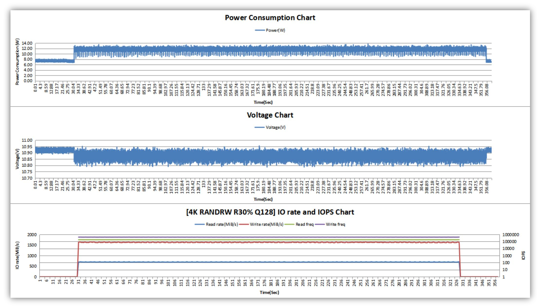 通过自研的高精度电压/功耗采集模块,实时监控 SSD 在不同负载压力下的电压/功耗水平