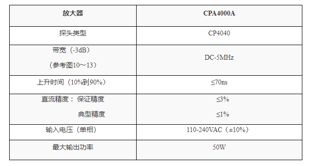 CP3000/4000系列电流探头是一款能够同时测量直流和交流的高频电流探头。其特点包括:高带宽,可准确快速捕捉电流波形;高精度,典型精度为1%,满足大部分测试领域的需要;多款探头可供选择,方便不同量程电流测量;标准的BNC输出接口,可匹配任何厂家示波器。常用于开关电源、马达驱动器、电子整流计、LED照明、新能源等设计和测试应用中。