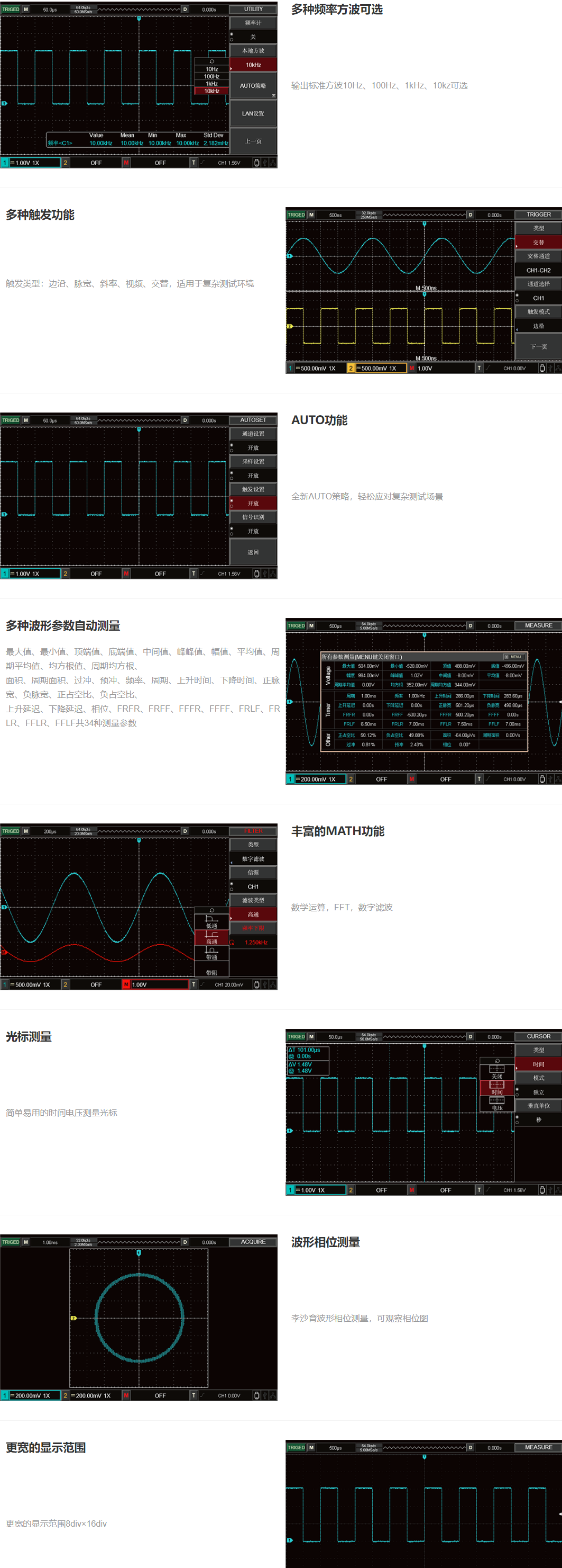 最高波形捕获率:8000wfms/s
