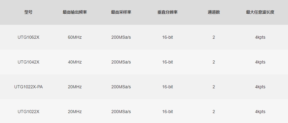 UTG1000X系列函数/任意波形发生器,采用先进的直接数字频率合成技术生成精确,稳定的波形。低至1μHz的频率分辨率,是一款经济型、高性能、多功能的函数/任意波形发生器。可生成精确、稳定、纯净、低失真的输出信号,便捷的操作、优越的性能指标以及人性化的图形显示,让您的测试更加得心应手,是一款满足测试、学习需求、提高工作效率的多功能设备。