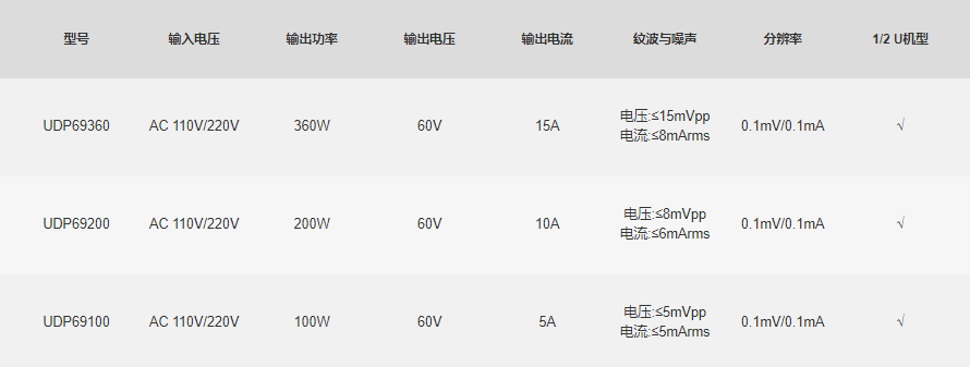 UDP69000系列是单通道宽范围可编程开关直流电源,可在固定的功率下实现多种电压和电流的组合输出,全系列内置标准RS-232、USB支持SCPI协议,方便远程控制、工业PLC控制和组建智能化测试平台。广泛应用于DC-DC 电源模块、电池充电及传感器等多种测试领域。