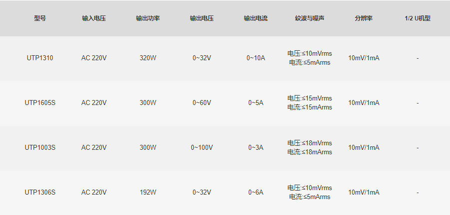 UTP1000系列经济型开关直流电源,拥有四位电压、电流、功率数码屏显示,测量范围广泛,具备10mV/1mA高精度分辨率,同时具备多种保护功能,可稳定可靠的运行,具有高性价比优势,是广泛应用于家电维修及电子产品DIY等场景的理想选择。