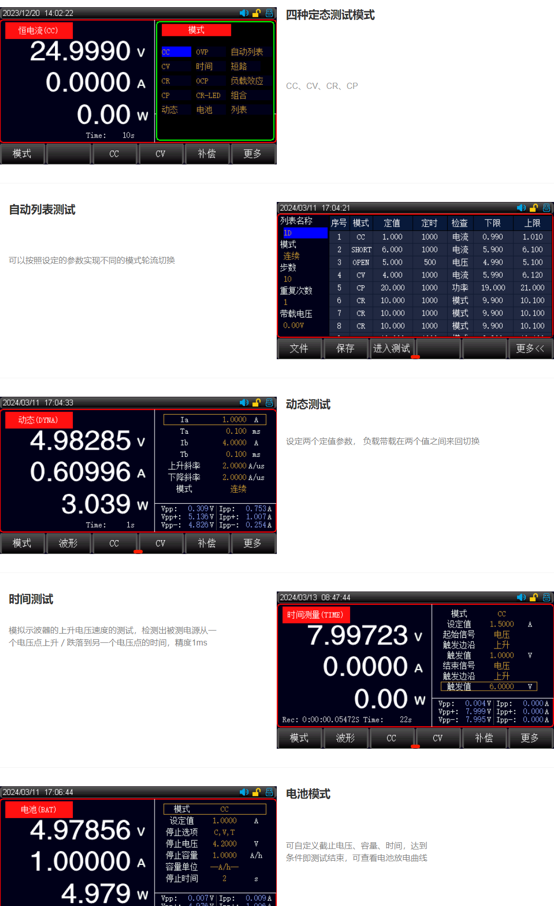 UTL8500+系列直流电子负载是新一代智能4.3英寸TFT液晶大屏高性价电子负载。高达500kHz的高速同步采样,高性能的DSP处理。0.1mV/0.01mA高分辨率,内置电压电流纹波显示,方便瞬态测试及多方位的智能模拟及分析。快捷、高效、直观的LIST可编程自动测试模式,满足大部分的研发及测试需要。