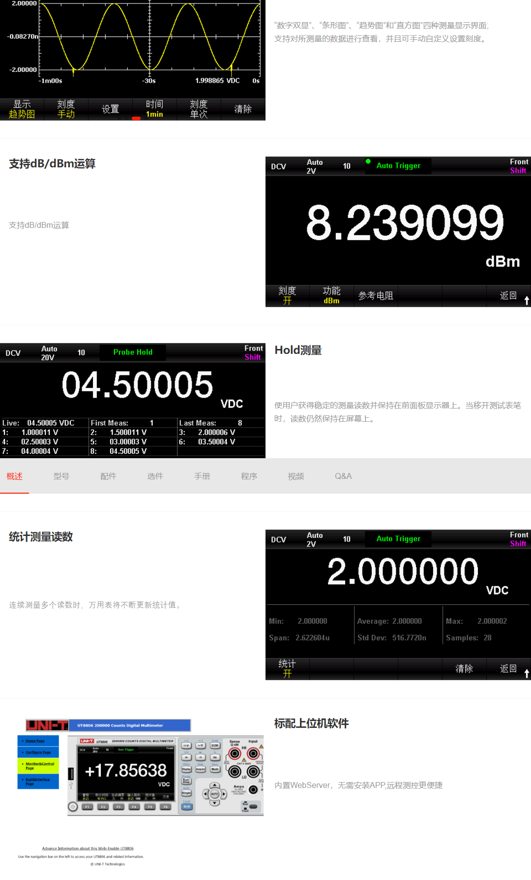 UT8806 6½位双显示数字万用表,拥有出众的读数速率和精确度,是为满足客户多功能,高精度,自动测量要求而设计的一款产品。除基本测量外,还有各种数学运算功能和更加人性化设计。