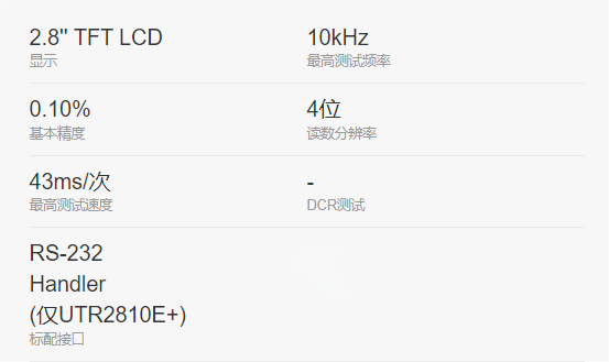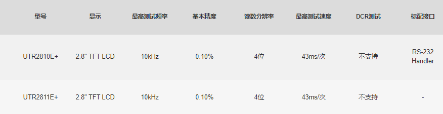 UTR2810E +系列数字电桥采用最新测量原理打造的新一代低频元件测量仪器。具有体积小、重量轻、外形美观、操作简便、超高性价比、测试稳定性好等优势。此外拥有丰富的接口,支持RS-232及HANDLER接口(仅UTR2810E+),满足自动化测试需求,无论是应用于生产线的质量控制、来料检验和元件自动测试系统均游刃有余。