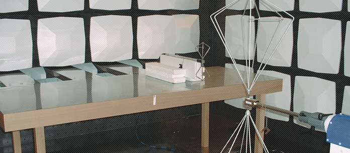 暗室具备一个接地到屏蔽体墙面的EUT测试桌,覆盖金属接地板的地面。一个单叶为1.20m x 2.05m(W x H)的门。墙壁和天花板铺设12英寸的复合吸波材料和反光白盖,可提供一个30MHz到18GHz的可用频率范围。此外暗室还具备烟雾探测系统,RFI电源线和信号线滤波器。 模块化的RF屏蔽体和RF吸波内衬是暗室将来可能需要搬迁或扩张的一个成熟的优势。按照CISPR 25的要求进行了场地性能评价。