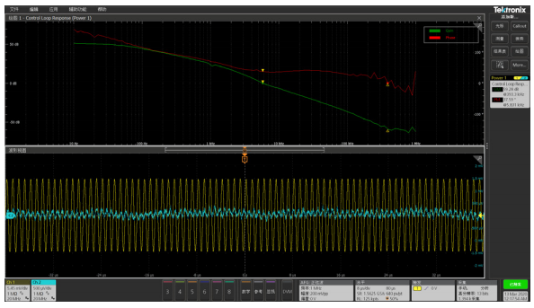 图来观察电源控制环路在不同频率下的增益和相位,